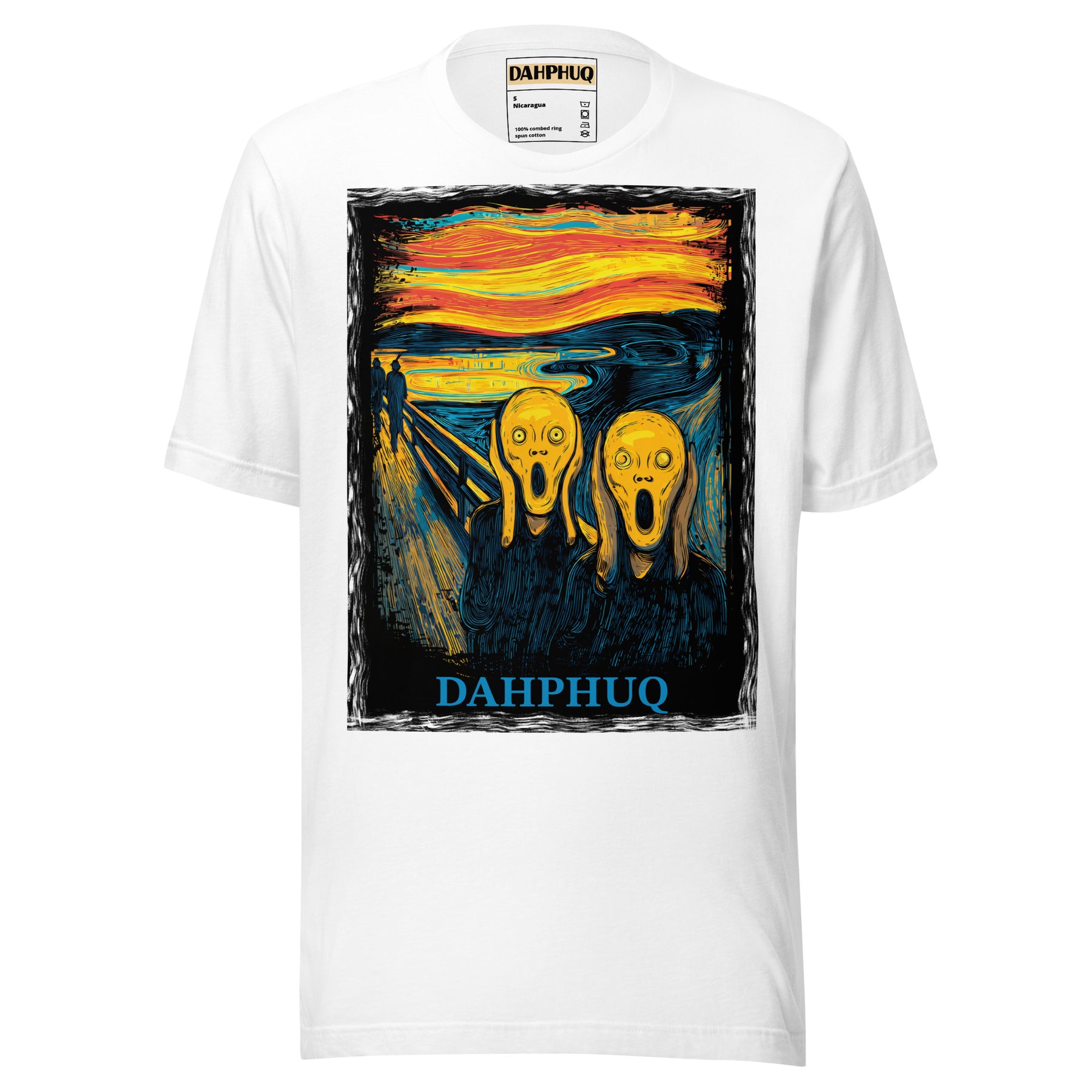 When the world feels like too much, sometimes all you can say is… DAHPHUQ! This design flips the iconic The Scream into a twisted, modern remix that screams louder than ever. Bold colors, haunting expressions, and a splash of humor make this the ultimate conversation starter. Throw it on, and let everyone know how you really feel — without saying a word.